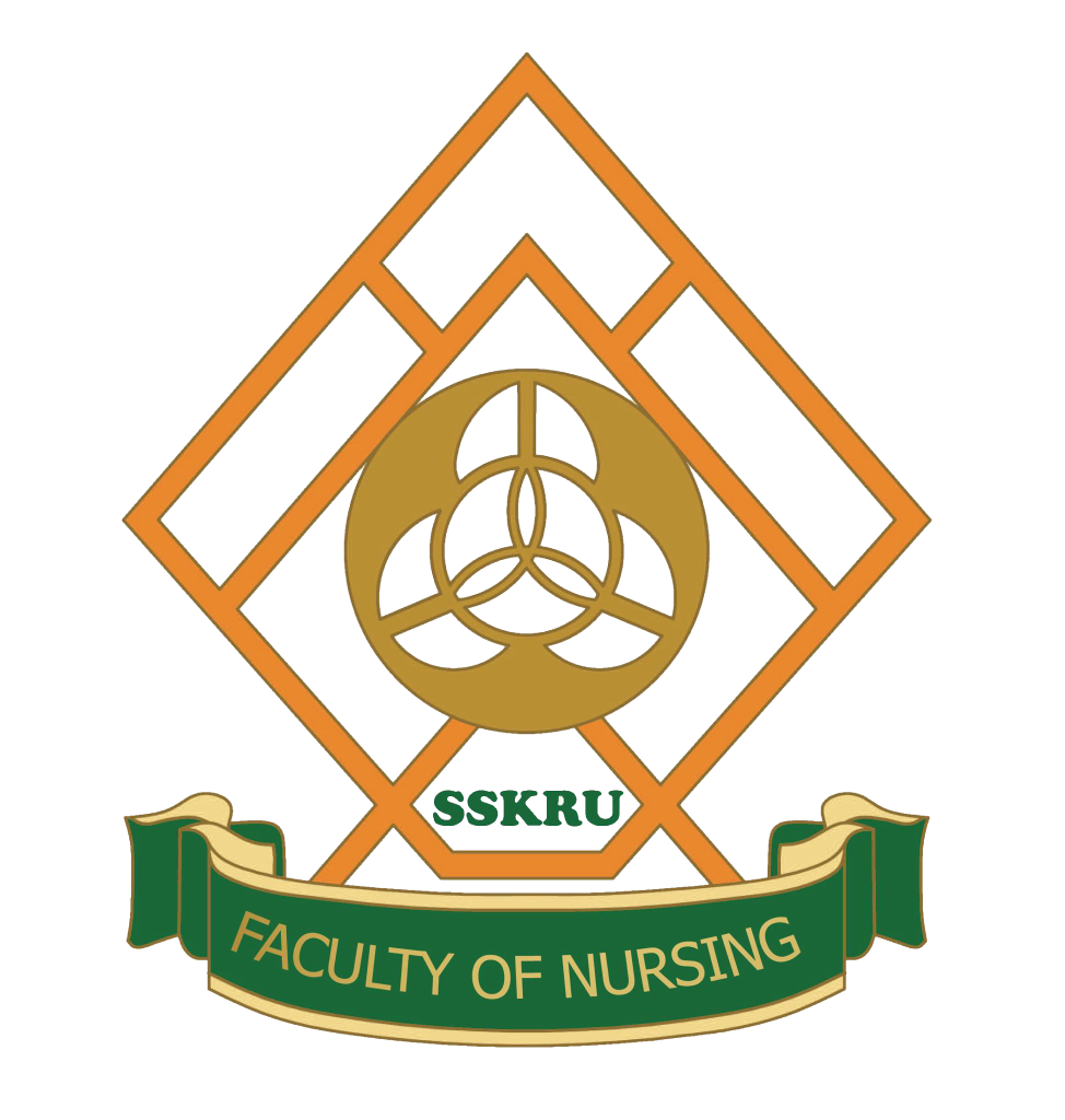 FACULTY OF NURSING หมายถึง คณะพยาบาลศาสตร์ และตัวอักษรสีทอง เป็นสีสัญลักษณ์ ประจำมหาวิทยาลัยราชภัฏศรีสะเกษ หมายถึง ความเจริญรุ่งเรืองทางภูมิปัญญา