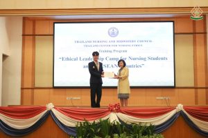เมื่อวันที่ 11 ตุลาคม 2568 ณ โรงแรมเอเชีย แอร์พอร์ท จังหวัดปทุมธานี อาจารย์พรพิมล พรมนัส นายนิรัตน์ สมสนิท และนายศรายุทธ ขุนภักดีผู้นำนักศึกษาชั้นปีที่ 2 เข้าร่วมโครงการอบอรมเชิงปฏิบัติการ เรื่อง Ethical Leadership Camp for Nursing Student among ASEAN Countries โดยศูนย์จริยธรรมทางการพยาบาลแห่งประเทศไทย ซึ่งนักศึกษาได้พัฒนาศักยภาพความเป็นผู้นำทางจริยธรรม และนำเสนอโครงการจริยธรรม (Moral project) ร่วมกับสถาบันการศึกษาในกลุ่ม ASEAN เพื่อดำเนินการต่อในสถาบัน ทั้่งนี้โครงการดังกล่าวมีกำหนดจัดขึ้นระหว่างวันที่ 11-13 ตุลาคม 2568