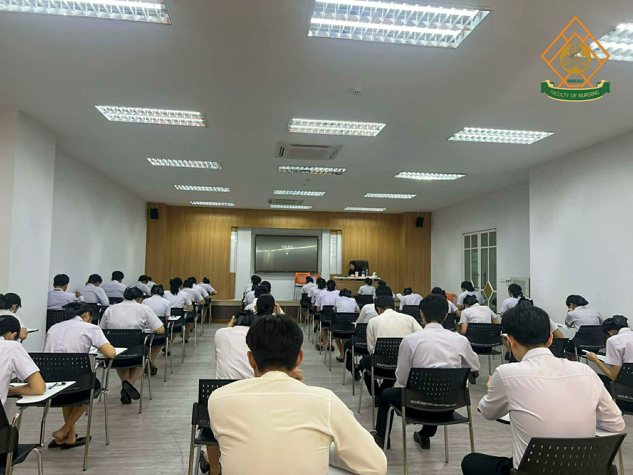 บรรยากาศ การเตรียมความพร้อมนักศึกษาพยาบาลก่อนเข้าสู่การสอบใบอนุญาตประกอบวิชาชีพการพยาบาลและการผดุงครรภ์ นักศึกษาชั้นปีที่ 4