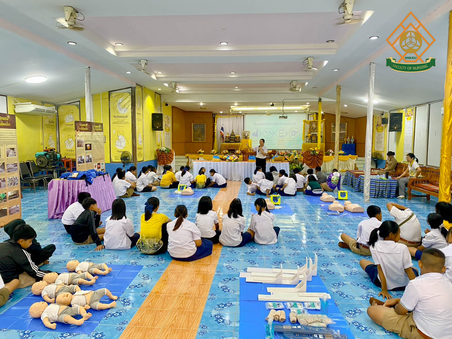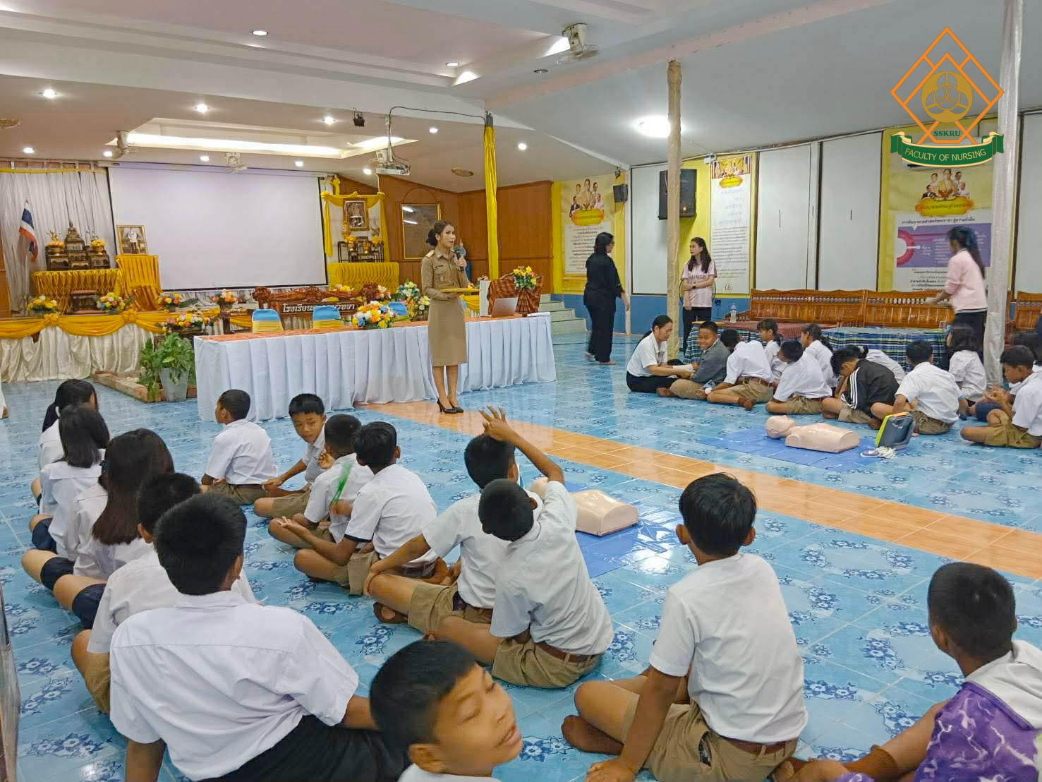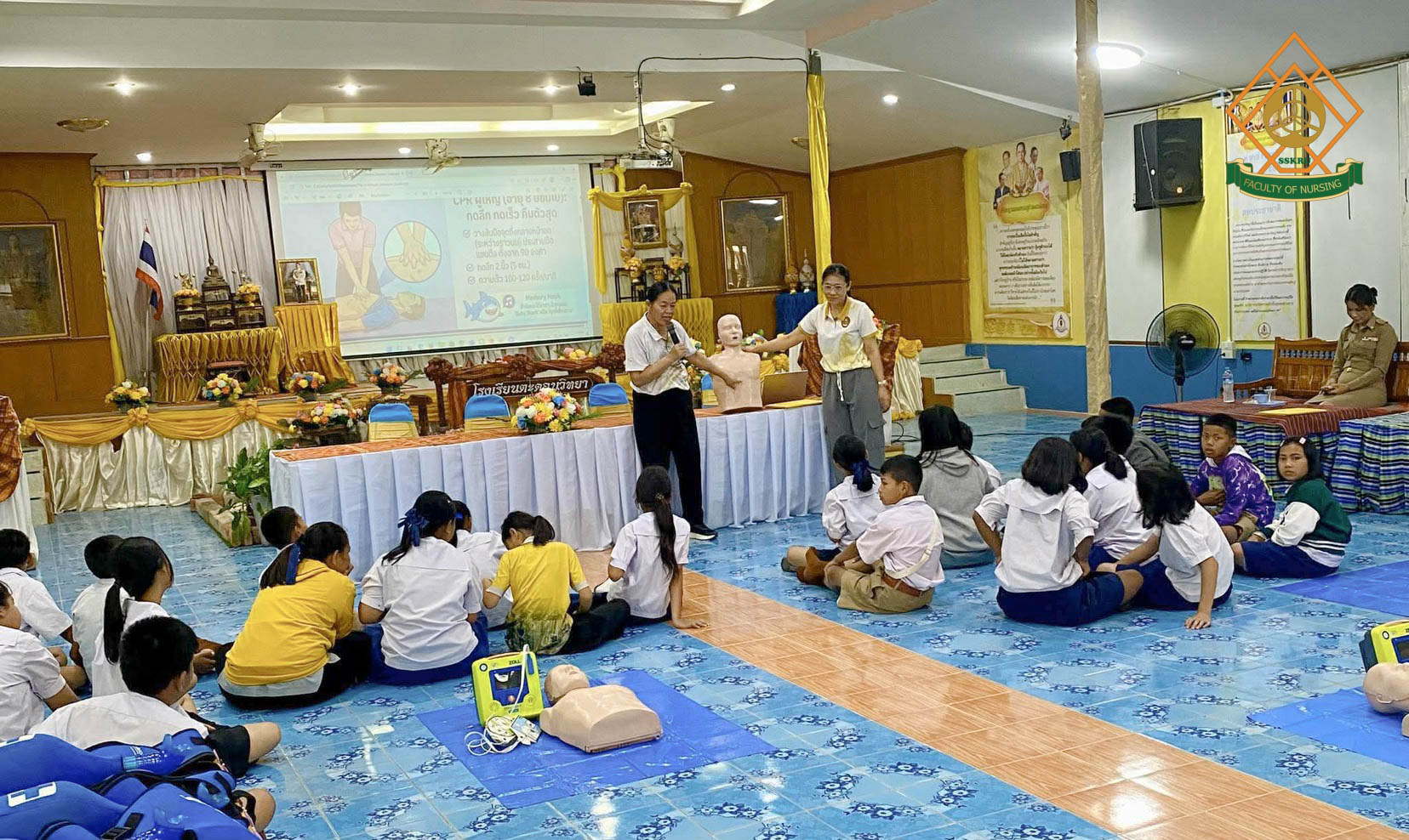 วันที่ 23 กุมภาพันธ์ 2569 ณ โรงเรียน ตะดอบวิทยา ตำตะดอบ อำเภอเมือง จังหวัดศรีสะเกษ อาจารย์พุทธิพร พิธานธณากูล รองคณบดีฝ่ายวิจัยและบริการวิชาการพร้อมด้วยทีมวิทยากรจากคณะพยาบาลศาสตร์และสาขาวิชาสาธารณสุขชุมชนคณะศิลปะศาสตร์และวิทยาศาสตร์ จำนวน 4 ท่าน ร่วมทำกิจกรรมโครงการเทิดพระเกียรติ 125 ปี สมเด็จย่า ฉลาดใช้บริการ ฉลาดช่วยผู้ป่วยฉุกเฉิน โดยฝ่ายวิจัยและบริการวิชาการ คณะพยาบาลศาสตร์ มหาวิทยาลัยราชภัฏศรีสะเกษ วัตถุประสงค์เพื่อเทิดพระเกียรติสมเด็จย่าเนื่องในโอกาสครบรอบ 125 ปี อีกทั้งให้นักเรียนในโรงเรียนระดับประถมศึกษา จังหวัดศรีสะเกษ มีความรู้และทักษะในการช่วยฟื้นคืนชีพและใช้อุปกรณ์ AED ได้อย่างถูกต้องปลูกฝังจิตสำนึกด้านจิตอาสาและการดูแลสุขภาพในชุมชนของตนเองเพื่อสร้างเครือข่ายเยาวชนในพื้นที่ห่างไกลที่มีศักยภาพในการช่วยเหลือผู้ป่วยฉุกเฉินซึ่งกลุ่มเป้าหมายคือนักเรียนชั้นประถมศึกษาชั้นปีที่ 5 และ 6 จำนวน 50 คน