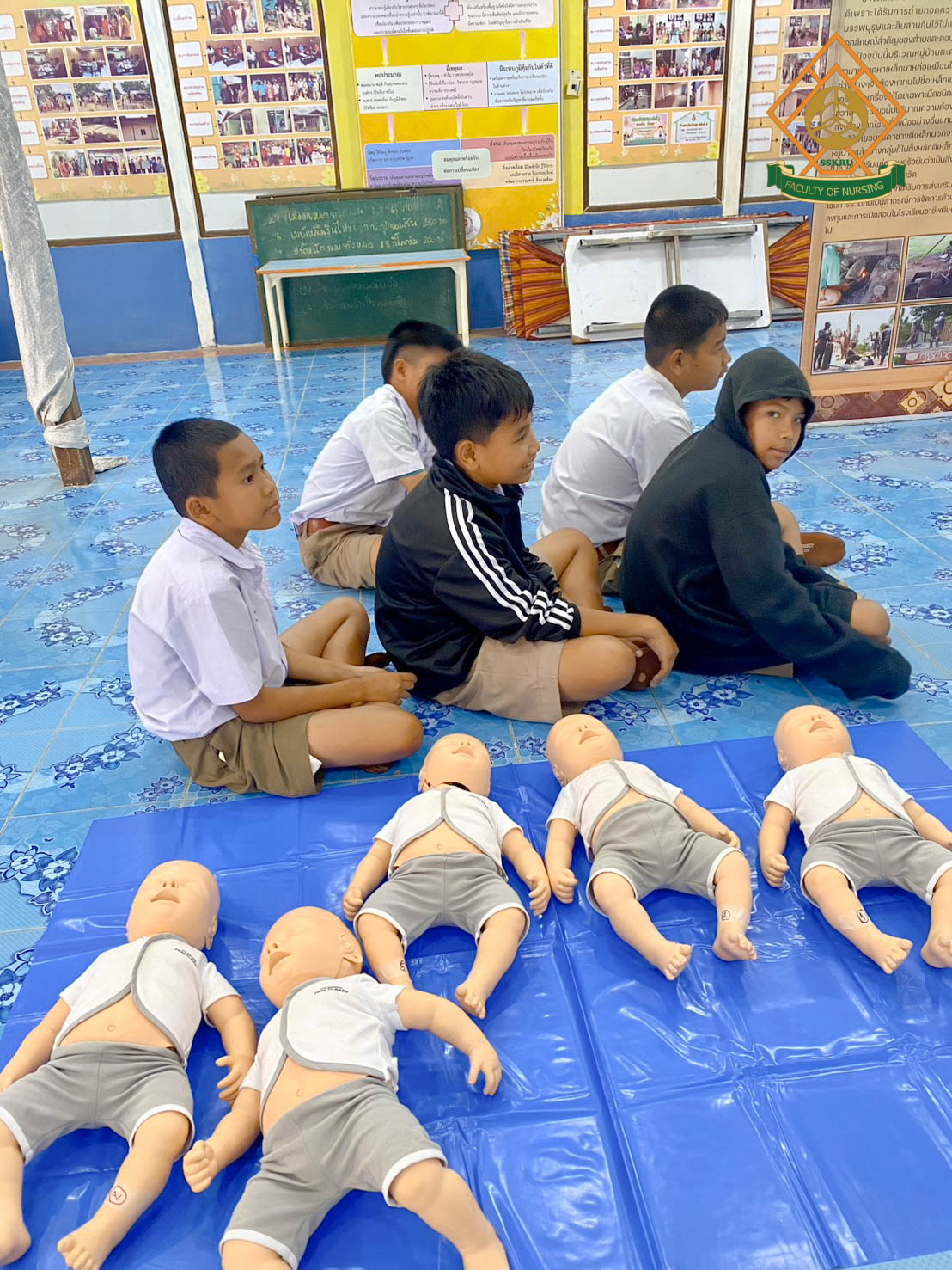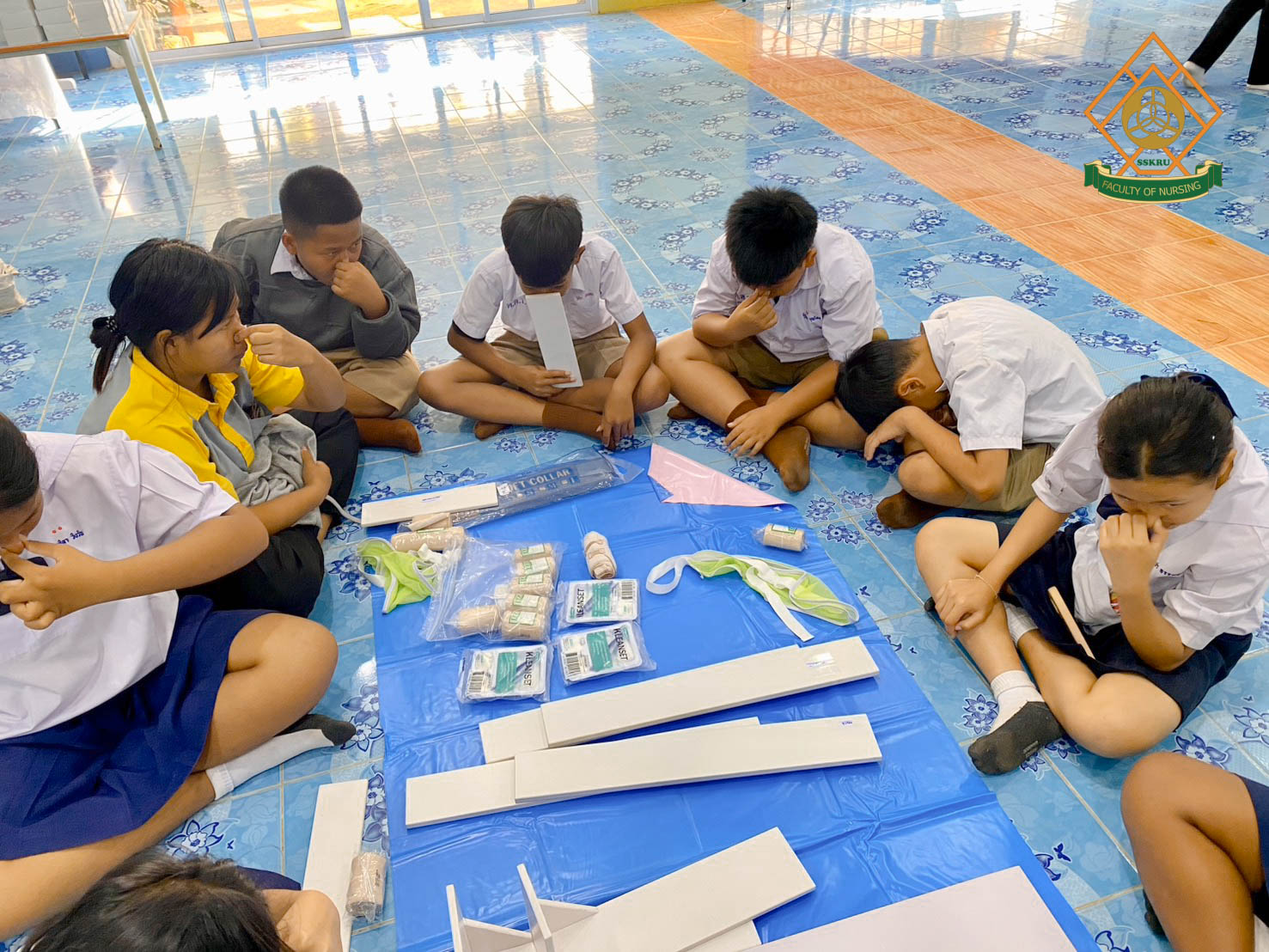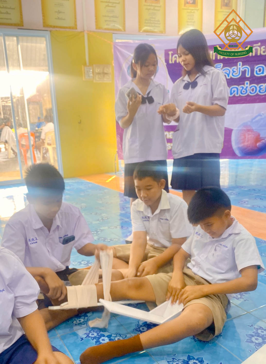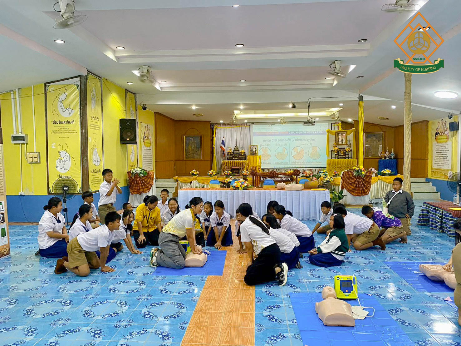 วันที่ 23 กุมภาพันธ์ 2569 ณ โรงเรียน ตะดอบวิทยา ตำตะดอบ อำเภอเมือง จังหวัดศรีสะเกษ อาจารย์พุทธิพร พิธานธณากูล รองคณบดีฝ่ายวิจัยและบริการวิชาการพร้อมด้วยทีมวิทยากรจากคณะพยาบาลศาสตร์และสาขาวิชาสาธารณสุขชุมชนคณะศิลปะศาสตร์และวิทยาศาสตร์ จำนวน 4 ท่าน ร่วมทำกิจกรรมโครงการเทิดพระเกียรติ 125 ปี สมเด็จย่า ฉลาดใช้บริการ ฉลาดช่วยผู้ป่วยฉุกเฉิน โดยฝ่ายวิจัยและบริการวิชาการ คณะพยาบาลศาสตร์ มหาวิทยาลัยราชภัฏศรีสะเกษ วัตถุประสงค์เพื่อเทิดพระเกียรติสมเด็จย่าเนื่องในโอกาสครบรอบ 125 ปี อีกทั้งให้นักเรียนในโรงเรียนระดับประถมศึกษา จังหวัดศรีสะเกษ มีความรู้และทักษะในการช่วยฟื้นคืนชีพและใช้อุปกรณ์ AED ได้อย่างถูกต้องปลูกฝังจิตสำนึกด้านจิตอาสาและการดูแลสุขภาพในชุมชนของตนเองเพื่อสร้างเครือข่ายเยาวชนในพื้นที่ห่างไกลที่มีศักยภาพในการช่วยเหลือผู้ป่วยฉุกเฉินซึ่งกลุ่มเป้าหมายคือนักเรียนชั้นประถมศึกษาชั้นปีที่ 5 และ 6 จำนวน 50 คน