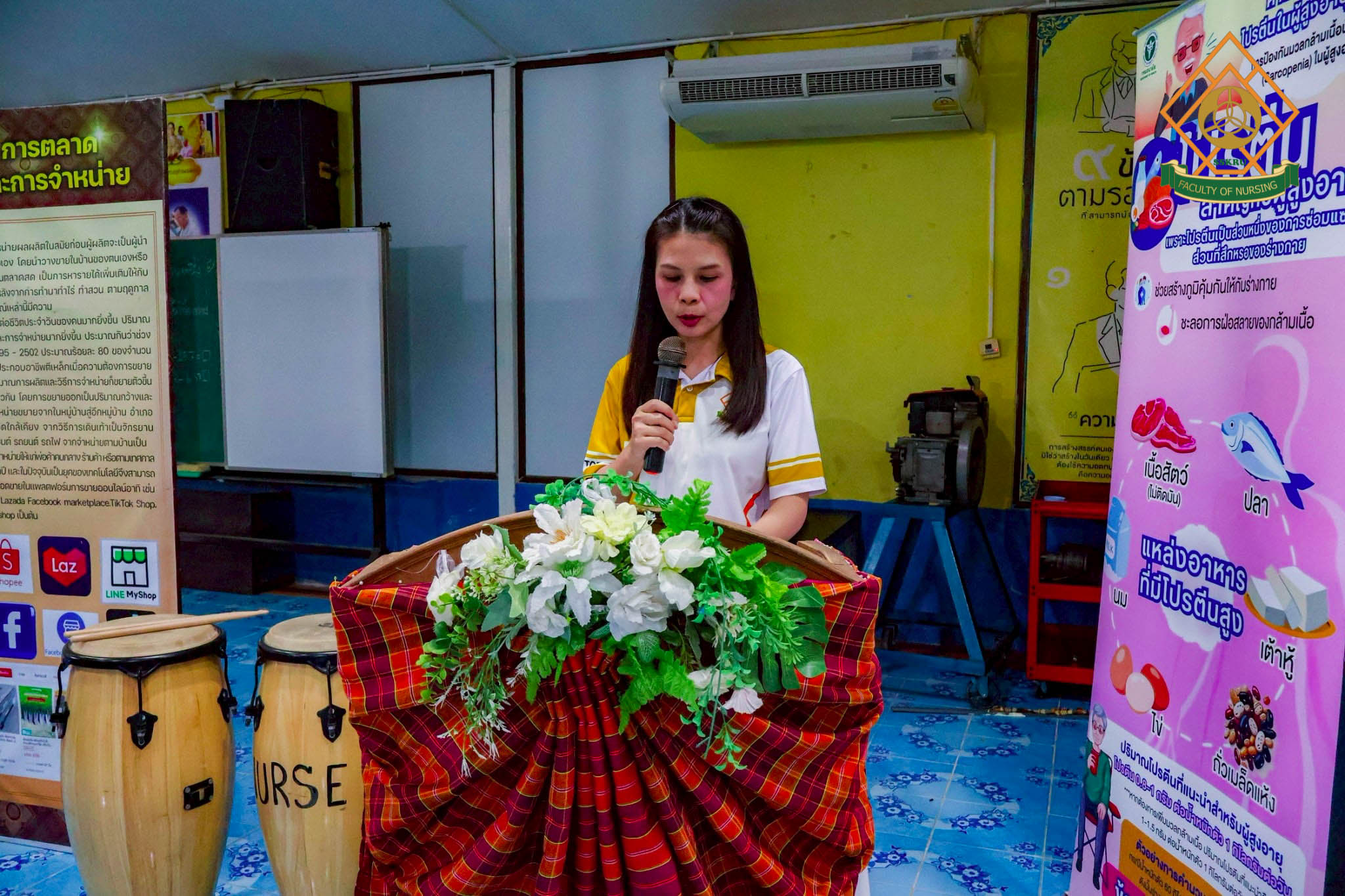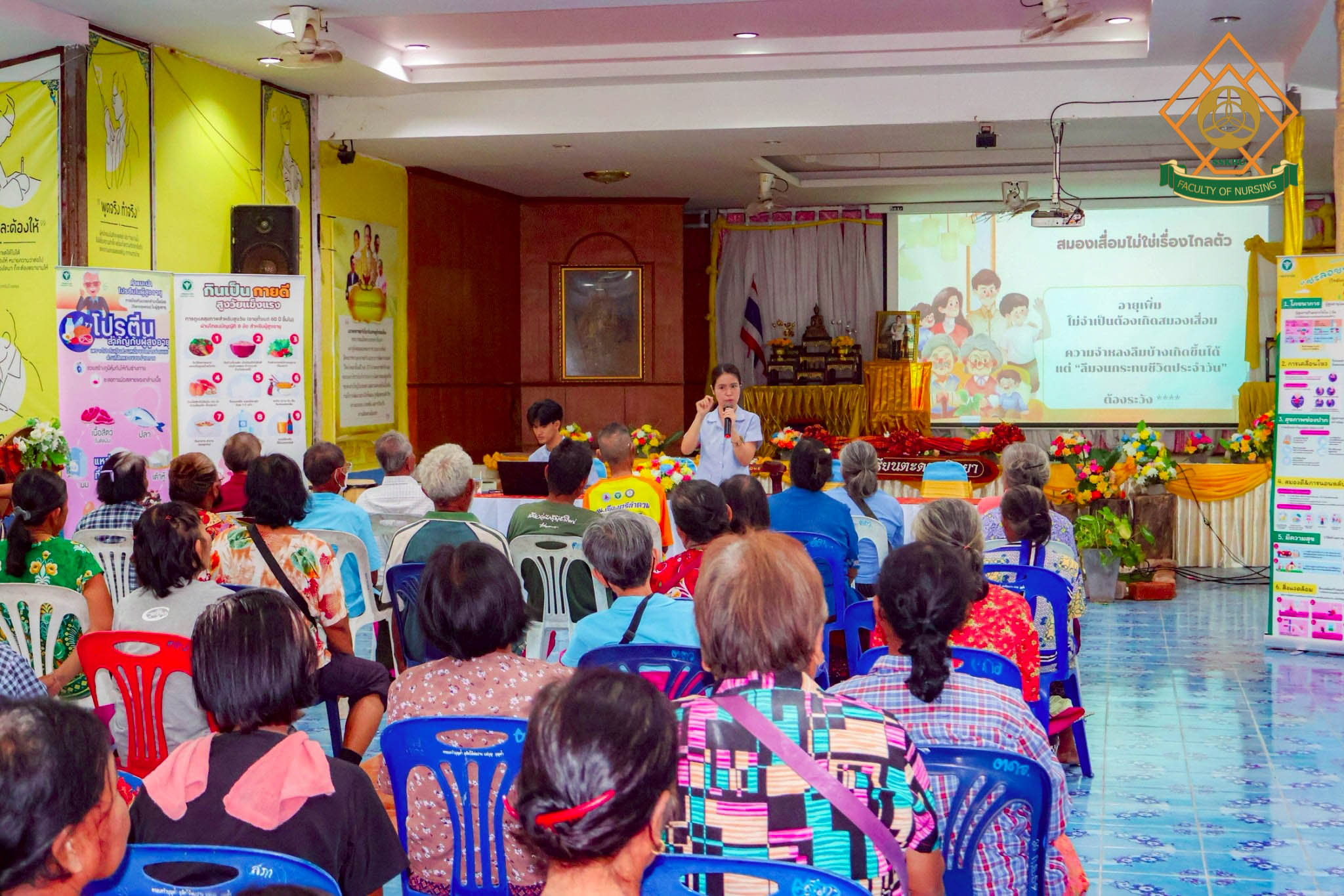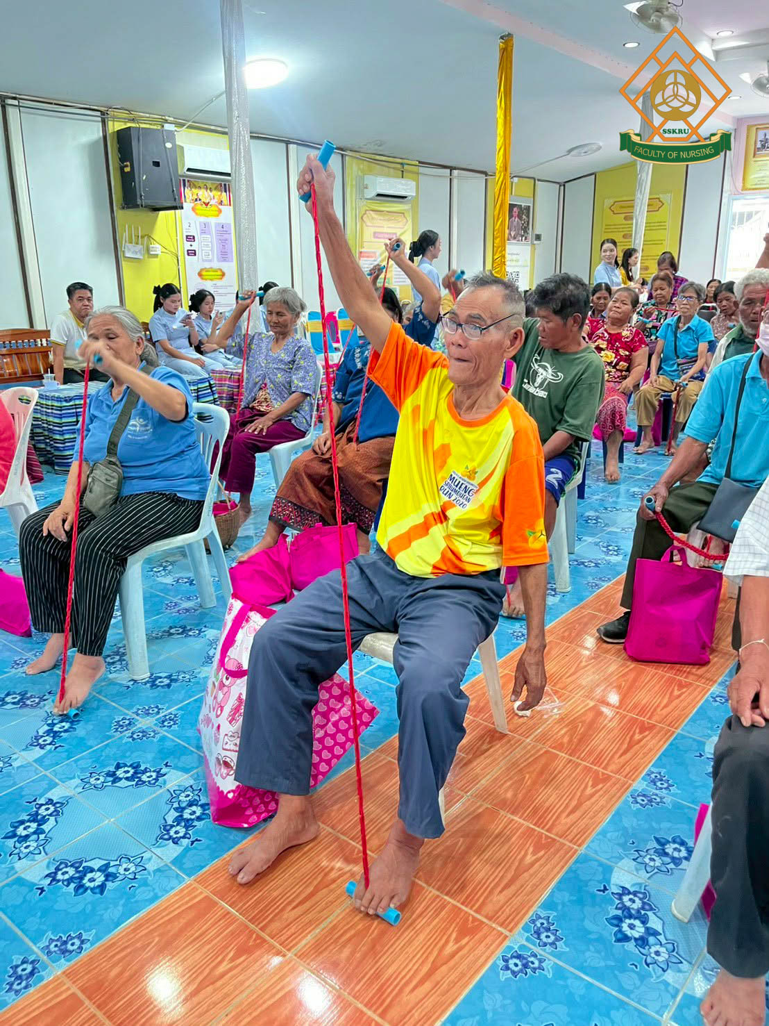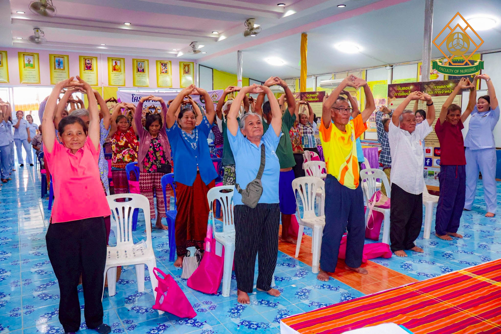 วันที่ 2 มีนาคม พ.ศ. 2569 ณ โรงเรียนตะดอบวิทยา ตำบลตะดอบ อำเภอเมือง จังหวัดศรีสะเกษ คณะพยาบาลศาสตร์ได้จัดโครงการยกระดับคุณภาพชีวิตการดูแลตนเองโดยใช้ชุมชนเป็นฐาน เพื่อส่งเสริมสุขภาวะในผู้สูงอายุ โดยมีวัตถุประสงค์เพื่อพัฒนาศักยภาพผู้สูงอายุในการดูแลสุขภาพตนเอง ส่งเสริมการมีส่วนร่วมของชุมชนและเครือข่ายในพื้นที่ สร้างรูปแบบการส่งเสริมสุขภาวะผู้สูงอายุที่สอดคล้องกับบริบทจังหวัดศรีสะเกษ กิจกรรมอบรมผู้สูงอายุกลุ่ม active aging ซึ่งได้มีการบูรณาการกับการเรียนการสอนในรายวิชาการพยาบาลผู้สูงอายุ โดยนักศึกษาพยาบาล ชั้นปีที่ 2 ร่วมประเมินภาวะสุขภาพผู้สูงอายุ และจัดกิจกรรมส่งเสริมสุขภาพแก่ผู้สูงอายุในด้านการป้องกันภาวะสมองเสื่อม อาหารส่งเสริมสุขภาพผู้สูงอายุ การออกกำลังกายในผู้สูงอายุ การป้องกันการหกล้มในผู้สูงอายุ การป้องกันภาวะมวลกล้ามเนื้อน้อย และภาวะเปราะบาง