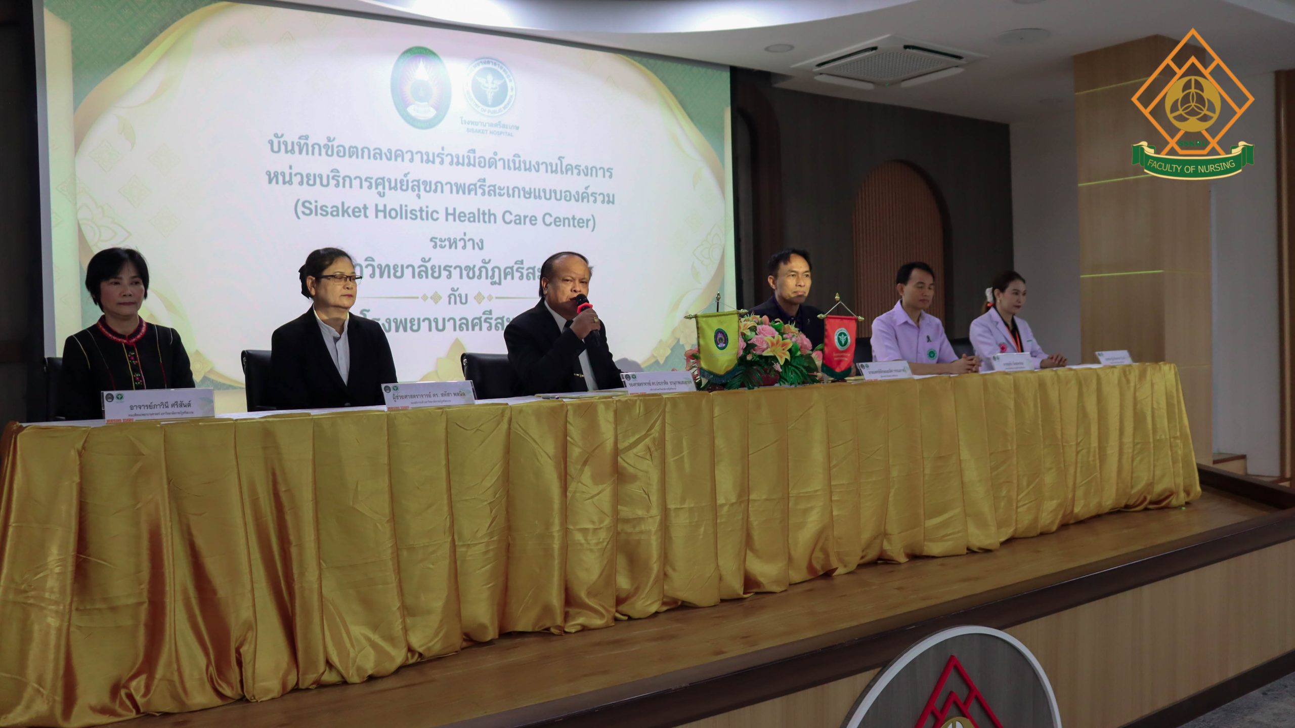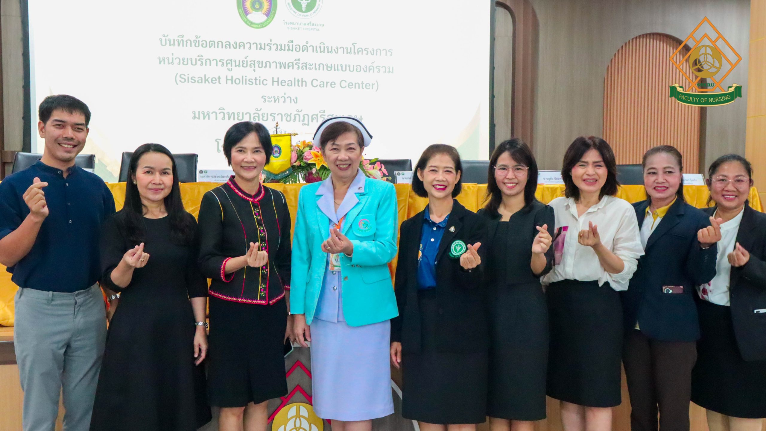 วันที่ 23 มีนาคม 2569 เวลา 09.00 น. ณ ห้องประชุมพรรณบุปผา ชั้น 1 อาคารเรียนและปฏิบัติการวิทยาศาสตร์สุขภาพ : คณะพยาบาลศาสตร์ อาจารย์ภาวินี ศรีสันต์ คณบดีคณะพยาบาลศาสตร์ เข้าร่วมลงนามเป็นพยาน”บันทึกข้อตกลงความร่วมมือดำเนินงานโครงการหน่วยบริการศูนย์สุขภาพศรีสะเกษแบบองค์รวม(Sisaket Holistic Health Care Center)ระหว่างมหาวิทยาลัยราชภัฏศรีสะเกษ กับ โรงพยาบาลศรีสะเกษ(MOU)” โดยมีวัตถุประสงค์ ดังนี้